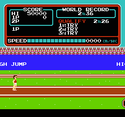 High jump was the dumpest event, as far as I could work out you could never select your hight so you could NEVER even break a world record, so I don't know what the point of this event was. Another reason I'm thinking is because Kemco's version was probably faulty, but maybe that's the charm we liked about this game.