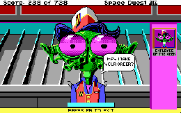 What I don't like is that Space Quest 3 rarely ever gets a mention. So I put a stop to this now! This is clearly my favourite game of the series and I will explain why. Back when I owned an XT, it was kind of limited as to what you could find that would run on an EGA card and for something to look and play this impressively was unheard of at the time. The text input is still my personal favourite as it allowed you to try different things and often this would get amusing results.