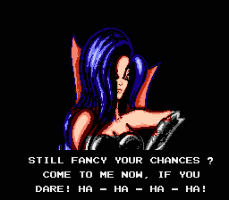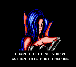 Then you finally battle with the "boob" lady. Now this is a real boss battle, this is nearly as frustrating as one of the levels, if not worse. She jumps around like a woman that's had too much red bull and shoots this crap at you.