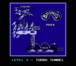 This level is fast paced and has an awesome soundtrack, which is what I'm currently using as my ring tone - it's really that good! In this one you have to out run this rat dow what looks like level 8, just going with a different colour palette. So you have to beat this rat down to the bombs and kick it (as you do). The first two races, are doable, but the third is really, really hard. You have to move straight away, even before you hear him coming and get basically all the drops 100% perfect so as to even have a chance to get down there - even then by that time you forget what side the bomb is on, so good luck or buy a ready replacement controller when you throw it up against the brick wall.